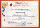 Общероссийская Малая академия наук «Интеллект будущего» организовала и провела Всероссийский очный форум «Педагогический олимп-2016», который состоялся в городе Сочи с 4 по 9 июля. Город Новосибирск представляла заместитель директора по научно-методической работе МБОУ города Новосибирска «Аэрокосмический лицей имени Ю.В. Кондратюка» Малыгина Людмила Павловна.