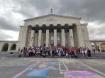 Своими яркими улыбками и громким смехом мы сумели разогнать дождливые тучи и под ярким солнышком открыли наш праздник арт-флешмобом с соответствующей тематикой «Пусть всегда будет солнце!».