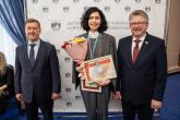 23 марта Рамиль Миргазянович Ахметгареев, начальник департамента образования мэрии города Новосибирска, в торжественной обстановке вручил Полине Константиновне Благодарственные письма мэра и департамента, Памятный знак лауреата VIII городского конкурса «Педагогический дебют», цветы и подарки.