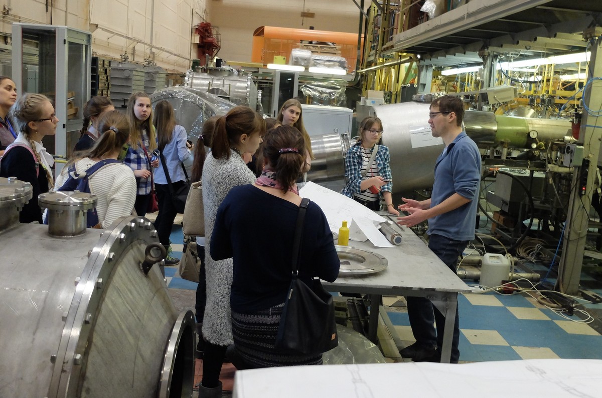 Сюда, в крупнейший научный институт Академгородка, приехали свыше 140 ребят из многих образовательных учреждений города. Для представителей школьных пресс-центров прошла познавательная экскурсия по площадкам научного института, которую провели молодые научные сотрудники. Здесь юнкоры увидели, как идут исследования в области физики высоких энергий, приручения плазмы и управляемого термоядерного синтеза, своими глазами увидели электронный коллайдер. После кофе-брейка (отдельная благодарность организаторам за чай и конфеты) все собрались в конференц-зале.