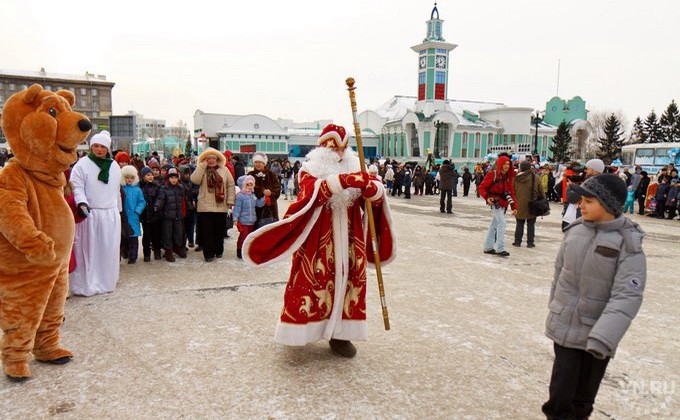 — Мы — сибиряки, мороза не боимся, поэтому с удовольствием принимаем гостя. Совсем скоро мы будем встречать праздник здесь, в центре города, где будет установлена новогодняя елка, залит каток, организована яркая иллюминация. Желаю всем горожанам встретить Новый год весело и с хорошим настроением!» — сказал мэр Анатолий Локоть. В ответ Дед Мороз вручил мэру города свой новогодний подарок, а после принял участие вместе с горожанами в развлекательном шоу с хороводами, песнями и активными играми на морозе. Время праздничной встречи пролетело быстро, но ведь Деда Мороза ждут и в других городах страны. И потому в этот же день Дед Мороз отправился дальше, в соседний с Новосибирском, большой город Томск. А всего его путешествие продлится 48 дней и завершится за несколько часов перед встречей Нового года грандиозным праздником в столице нашей страны Москве.