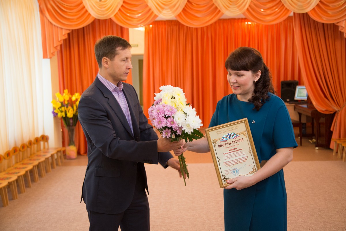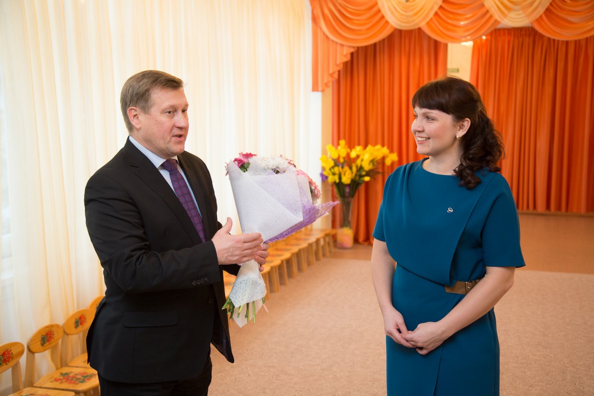 Мэр Анатолий Локоть поздравил лауреата Всероссийского конкурса «Воспитатель года России» Елену Жаркову