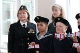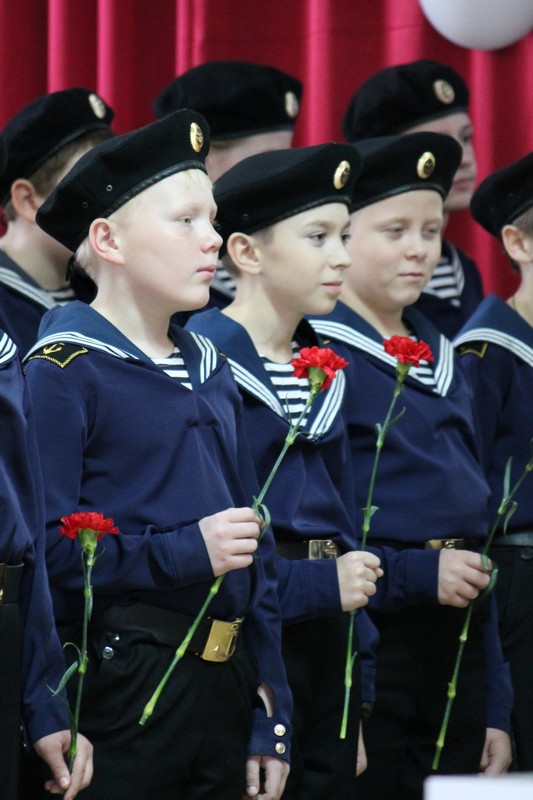 Церемония посвящения в Юнги сопровождалась вносом и выносом Андреевского флага, исполнением Гимна РФ, возложением гвоздик к мемориальной памятной доске Героя России Сергея Амосова.