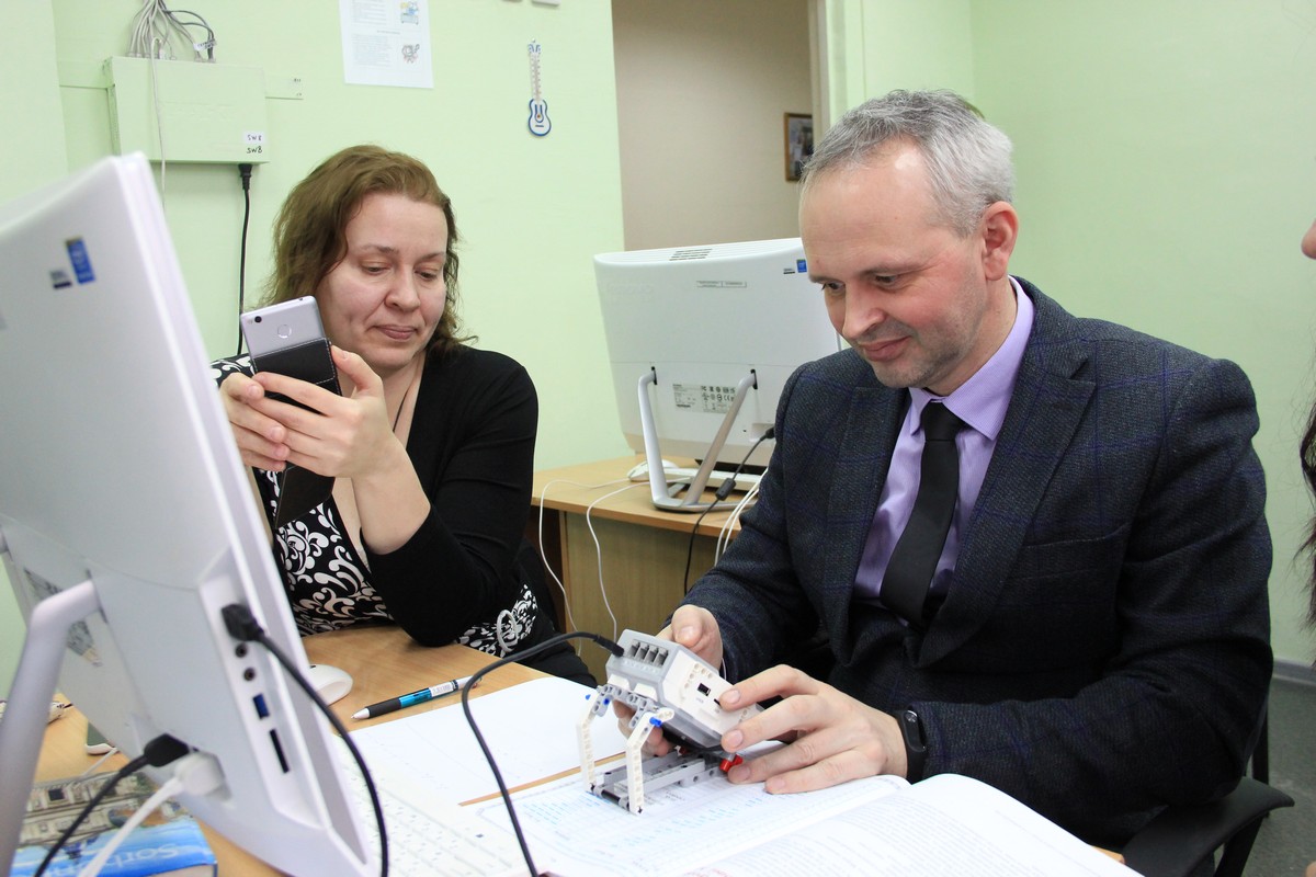При поддержке группы компаний «СибВерк» семинар и мастер-класс провел Виктор Викторович Тарапат, ведущий методист по образовательной робототехнике издательства «Лаборатория знаний».