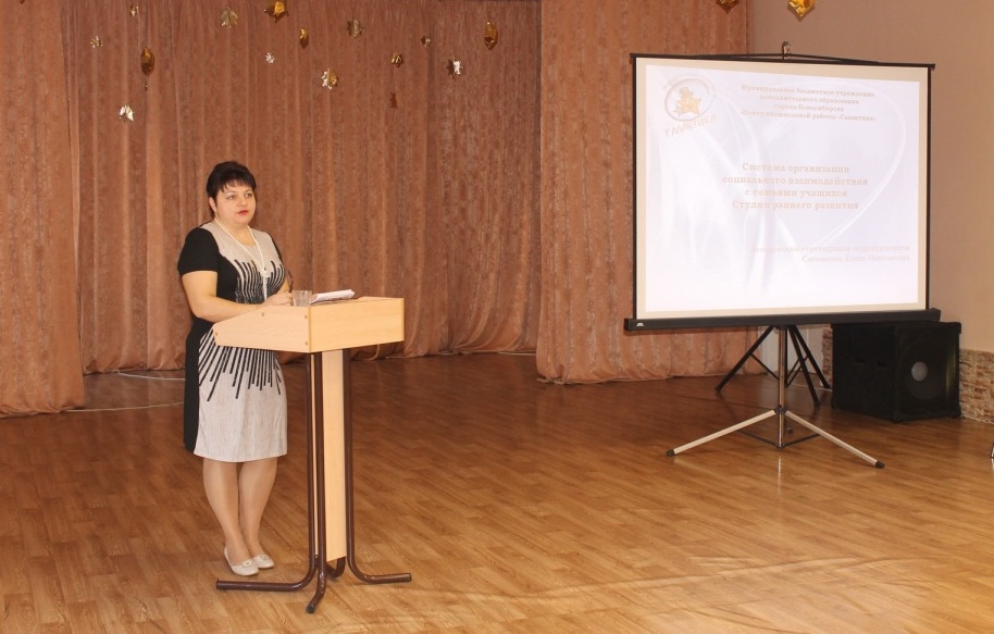 На стажерской площадке выступили заведующие структурными подразделениями ЦВР «Галактика», представившие свой опыт по организации социального взаимодействия. Так, руководитель студии раннего развития Смоликова Е.Н. отметила, что в ЦВР «Галактика» сложились устойчивые формы работы с родителями учащихся, которые стали традиционными. Это и родительские собрания, тематические беседы, консультации педагога-психолога, мастер-классы для родителей, информационные стенды для родителей, фотовыставки. Юрлова Е.А. показала инициирующую роль педагога в формировании системы взаимодействия по техническому и спортивному направлениям. Заведующий музыкально-художественным структурным подразделением Хурасева О.А. считает, что сетевое взаимодействие является ресурсом формирования социокультурного пространства Дзержинского района. О социальном взаимодействии как факторе повышения профессионального мастерства педагогов и учащихся в хореографическом структурном подразделении рассказала Мазепа О.Е. Щедренко О.С. представила профориентационную работу как результат партнерства и сотрудничества в социально-педагогическом структурном подразделении. Высокий уровень образовательной деятельности ЦВР «Галактика» способствовал тому, что учреждение официально признано стажировочной площадкой НГПУ. Об этом и других формах сотрудничества с ВУЗом рассказала Виль О.В.