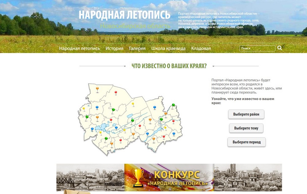 По инициативе министерства образования, науки и инновационной политики Новосибирской области при поддержке Издательского дома «Историческое наследие Сибири» стартовал историко-просветительский проект «Народная летопись Новосибирской области». Для реализации Проекта создан сайт http://letopisi54.ru, на котором читатель может не только узнать историю своего родного города, села, поселка, деревни, а также Новосибирской области, но и сам стать творцом истории своего края.