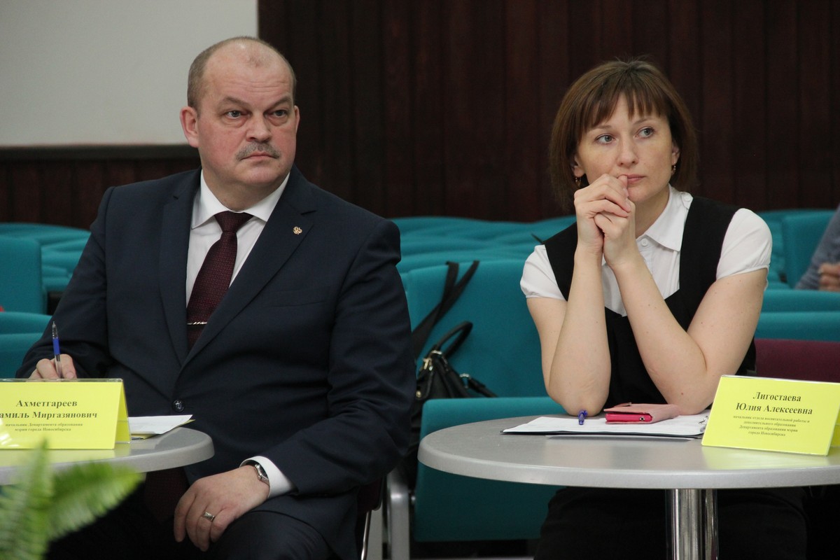 В работе круглого стола по теме «Потенциал дополнительного образования в современных условиях» приняли участие Валерий Александрович Шварцкопп, заместитель мэра города Новосибирска, и Рамиль Михайлович Ахметгареев, начальник департамента образования мэрии города Новосибирска.