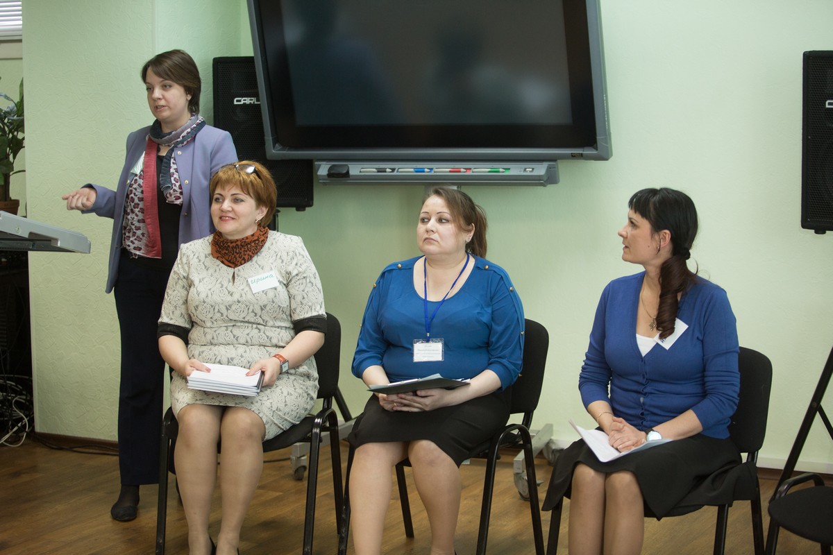 В течение 6 часов конкурсантами, в группах по пять человек, были разработаны и оформлены, а затем представлены на сцене два проекта: «Школа и семья: от сосуществования к взаимодействию и сотрудничеству» и «Городская мобильная лаборатория как средство формирования у участников образовательной деятельности навыков безопасной работы в сети Интернет».