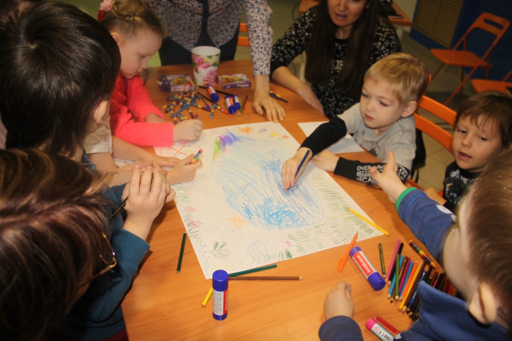 Ребята из Школы раннего развития «Дорастём до неба» и студий «Скиф», «Автограф», «Северное сияние» с помощью взрослых отвечали на вопросы о живой и неживой природе нашей планеты, рисовали, собирали изображения животных, участвовали в игре с мячом «Я знаю растения», вспоминали правила поведения в лесу.