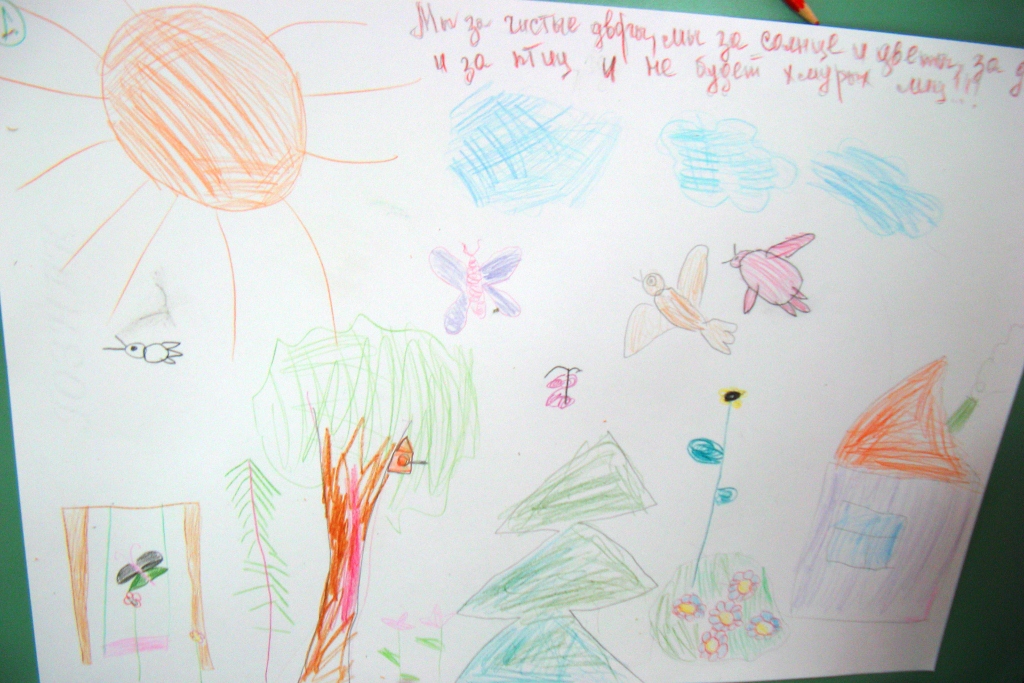 Заключительным творческим заданием каждой игры было создание экологических плакатов. «Берегите лес от пожара!», «Сохраним водоёмы чистыми!», «Мы за зелёные и чистые дворы!» – один из таких призывов проиллюсрировала каждая команда. Плакаты, которые дружно рисовали и раскрашивали все маленькие участники команды, получились яркими и наглядными.