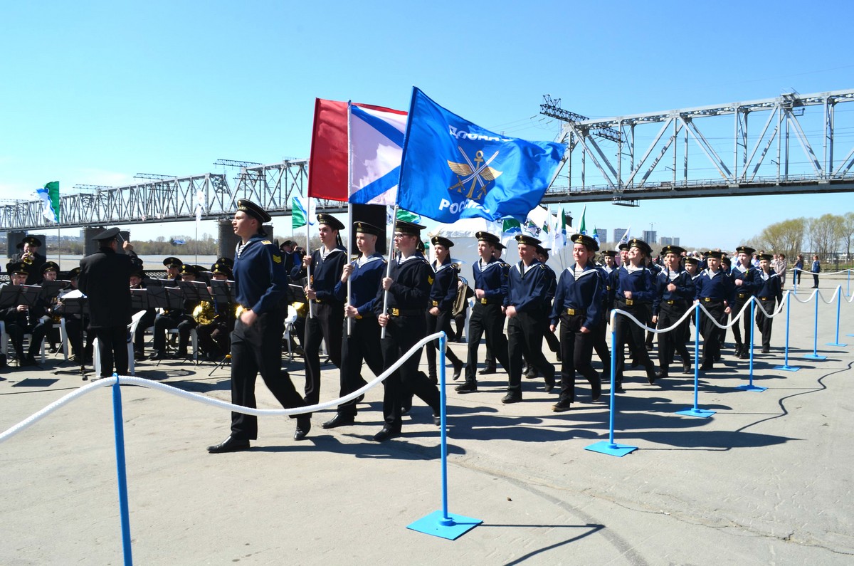 После поднятия флага курсанты прошли торжественным маршем и смогли увидеть парад теплоходов и маломерных судов. Экипажи приветствовали зрителей и участников открытия навигации праздничным салютом.