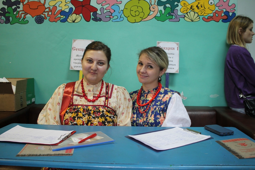 На секции «Методика преподавания традиционной хореографии (из опыта работы Центра традиционной русской культуры южного Подмосковья «Истоки»)» Чеботарева Елена Валерьевна, ведущий методист МУК «Центр традиционной русской культуры южного Подмосковья «Истоки», г. Подольск, познакомила всех с основами традиционной пляски, приемами обучения пляске детей от 4 лет.