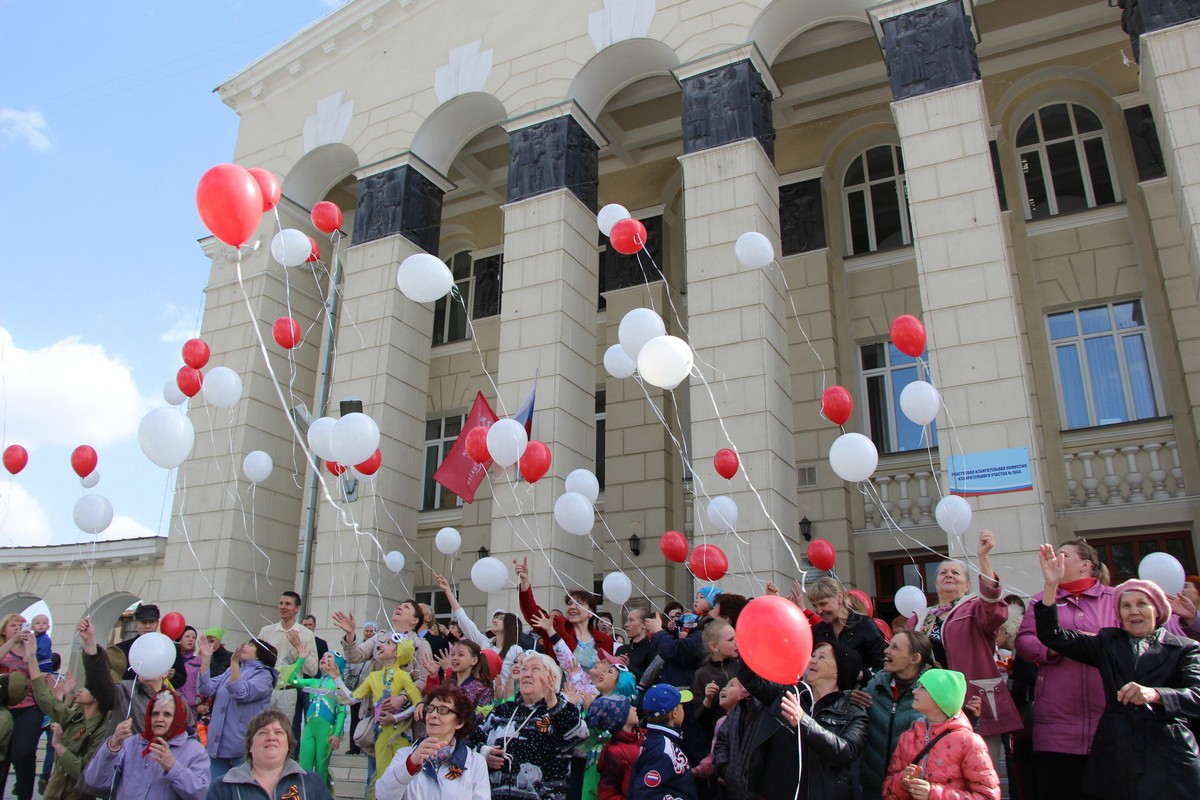 Программа завершилась на ступенях ДДТ им. Ефремова. В руках каждого выходящего из здания зрителя оказались 72 гелиевых шара, которые по команде устремились ввысь как память о подвиге наших дедов и прадедов, отвоевавших для нашего народа чистое небо над головой.