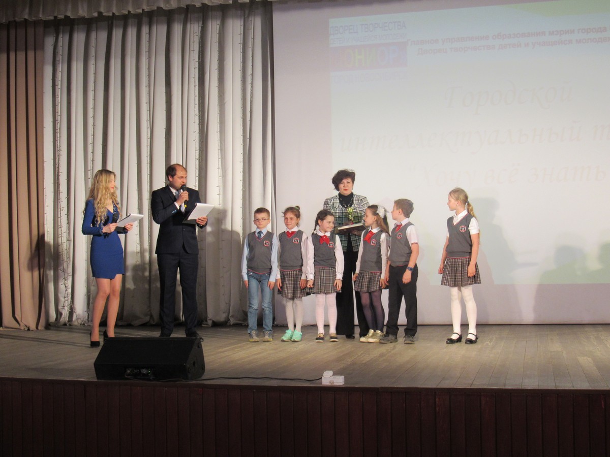 Победителем в турнире «Хочу все знать» для младших школьников стала команда «Радуга» гимназии № 4 (руководитель Н.А. Аникина). К слову, второе место здесь заняла команда «Знатоки» ЦДО «Алые паруса», готовившаяся у этого же руководителя.