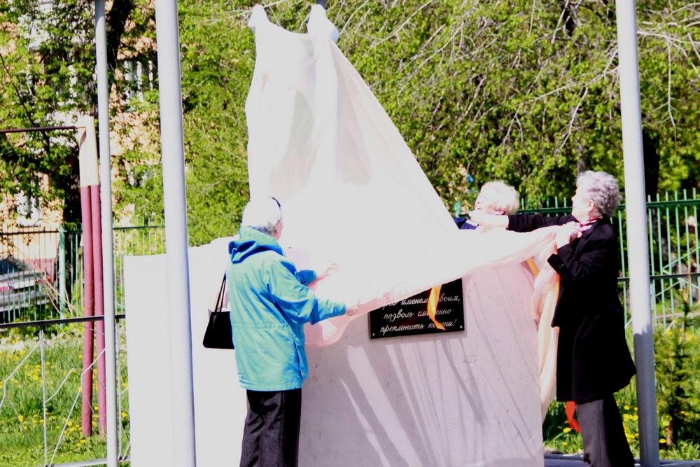 Почётное право открыть стелу было предоставлено тем педагогам, чей трудовой путь был связан только со школой № 90. Г.П. Никонова, З.С. Галкина и Э.А. Морозова с гордостью завершили свою миссию, и теперь эта прекрасная композиция, в основе которой символ женщины-птицы, стремящейся взлететь ввысь, несущей на своих крыльях земную любовь, будет радовать не только школьников, но всеx жителей микрорайона.