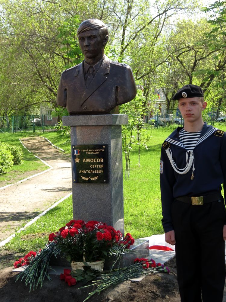 16 мая на территории школы № 46 имени Героя России С. Амосова состоялся торжественный митинг и открытие памятника Герою России Сергею Анатольевичу Амосову, погибшему при исполнении интернационального долга в Республике Афганистан. В памятном мероприятии приняли участие родители Сергея: Анатолий Тимофеевич и Миля Степановна, жители жилого района Пашино, школьники, представители общественных и патриотических организаций, заместитель губернатора Новосибирской области А.П. Титков, а также исполняющий обязанности главы администрации Калининского района Борисов Г.П. Памятник был безвозмездно изготовлен новосибирским скульптором Самариным Игорем Сергеевичем при поддержке «Норд Сити Молл» и общественной организации инвалидов войны в Афганистане. Инициатором открытия памятника стал полковник запаса Гурский Анатолий Иванович.