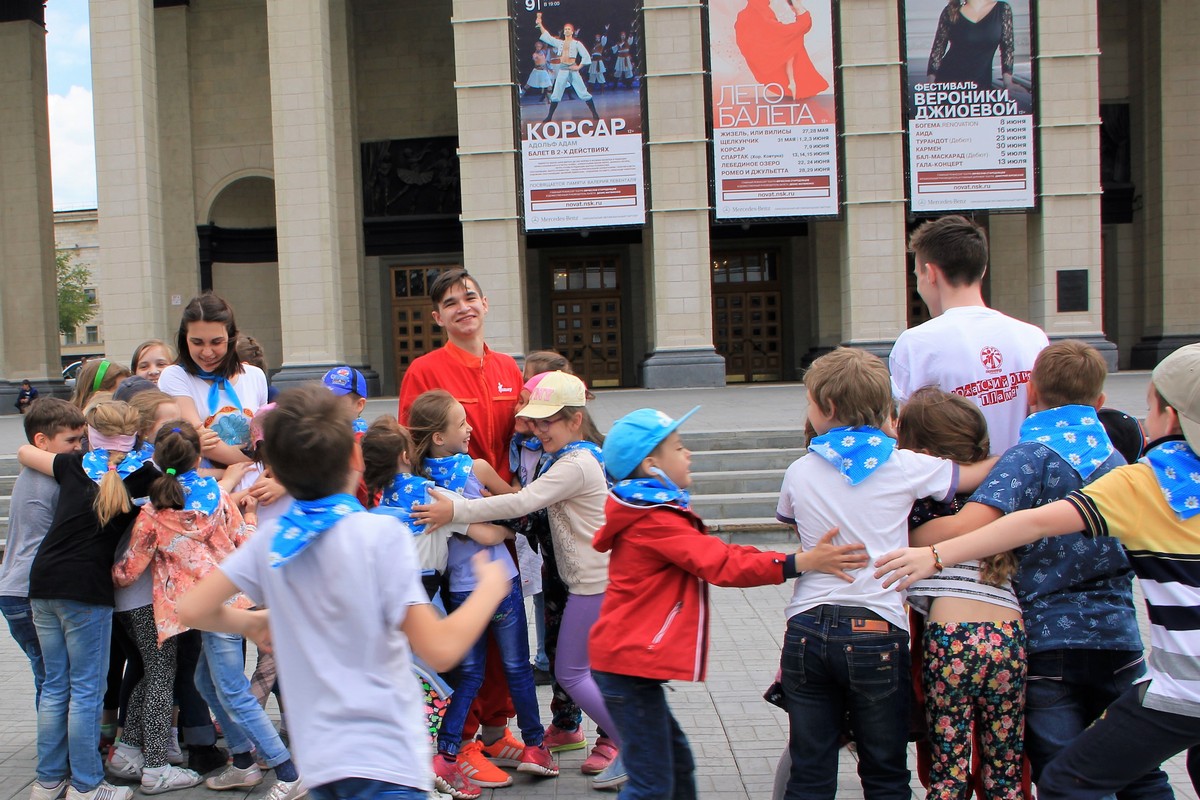 1 июня на площади перед Новосибирским театром оперы и балета стартовало «Разноцветное лето» – яркий, весёлый и занимательный праздник. Дети могли поиграть в огромные шахматы, научились делать забавных собачек из воздушных шариков. Настоящие мастера и мастерицы сделали элегантные браслеты из ленточек и красивые цветочные букеты из ткани и бумаги. Зажигательные танцы и весёлые игры провели с ребятами вожатские отряды. Большим сюрпризом стали дрессированные собачки, они чётко выполняли команды, прыгали через барьеры, пробегали через тоннели и танцевали.