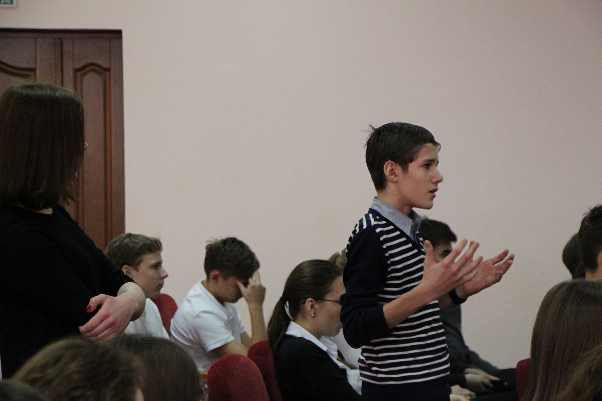 Ученики параллели седьмых классов посмотрели фильм «Республика ШКИД», «Точка, точка, запятая» и «В бой идут одни «старики». В разговоре-обсуждении фильмов на общих итоговых занятиях участвовали все седьмые классы в полном составе, и возможность высказать свою точку зрения была у каждого ученика. Какой опыт приобрели ШКИДовцы, пройдя путь от беспризорников? Какова «формула» личности? Как в фильме о войне раскрывается тема преодоления себя? Представляя свое понимание этих и других проблем увиденных фильмов, многие ребята занимали активную позицию. На итоговом занятии-фестивале «Фильмы, которые мы выбираем…» ребята предложили самостоятельно выбранные и рекомендуемые ими к просмотру в рамках «Киноклуба» в следующем учебном году фильмы: «Писатели свободы» (представил 7Б класс; ключевой вопрос, по их мнению, «Стоит ли «объявлять войну» людям, живущим с тобой в одной стране, городе, учащимся с тобой в одном классе только из-за того, что вы отличаетесь по внешности, темпераменту и стилю общения?»), «Дом странных детей мисс Перегрин» (7В; «О необычных способностях других детей и о том, как к этому относиться»), «Из 13 в 30» (7Г; «Милая комедия, можно посмеяться и немного задуматься; представляет жизнь подростка, его мечты, желания, проблемы, смотрится очень легко»); «Когда я стану великаном» (7Д; «показывается, как можно компенсировать свои внешние недостатки богатым внутренним миром», «раскрывается тема предательства и тема совести, вины перед учителем, которого герой фильма очень уважал и любил, но предал для того, чтобы его уважали одноклассники», «раскрывается тема первой школьной любви»). При общем голосовании для первого занятия «Киноклуба» на этой параллели в будущем учебном году учащимися 7-х классов выбран фильм «Когда я стану великаном».