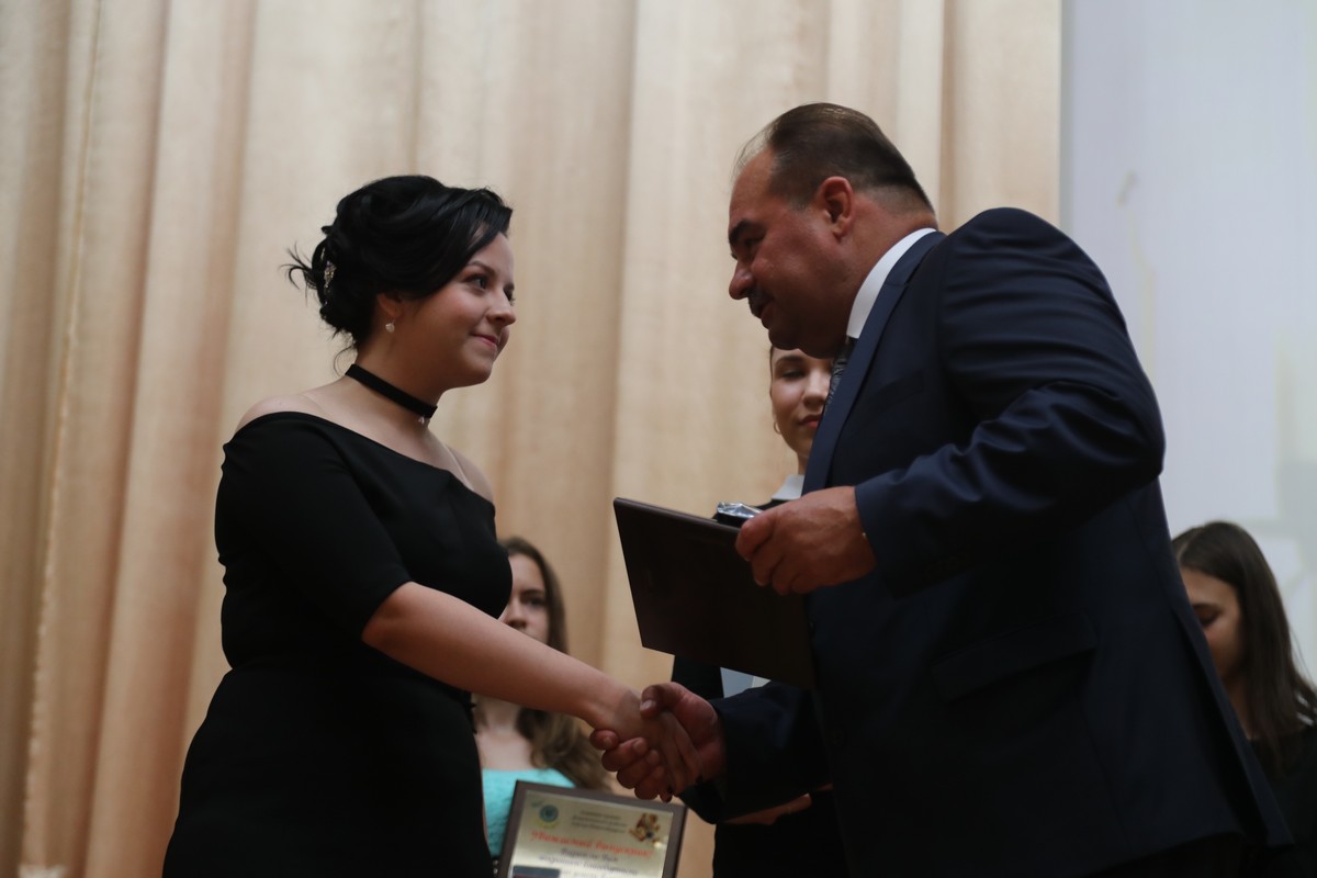 Во время торжественной церемонии Александр Иванович вручил выпускникам золотую медаль «За особые успехи в учении», памятный подарок от Главы Администрации Дзержинского района, родителям выпускников – благодарственное письмо за достойное воспитание детей. За качественную подготовку выпускников руководителям образовательных учреждений был вручен памятный адрес от Главы Администрации Дзержинского района.