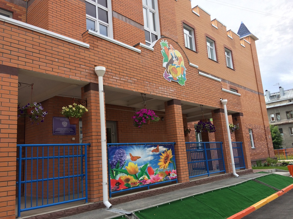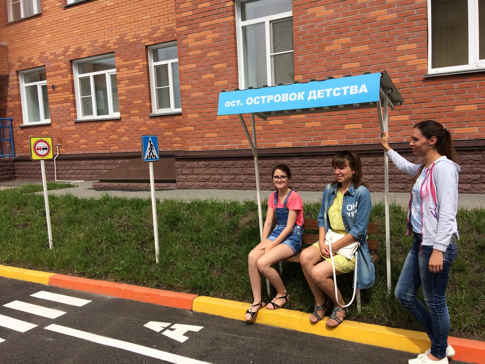 На остановочном павильоне надпись: «Ост. Островок детства». И, действительно, среди приземистых жилых домов 40-60-х годов постройки яркий солнечный детский сад № 105 «Улыбка» появился внезапно, как оазис, как цветущий остров среди серых скал.