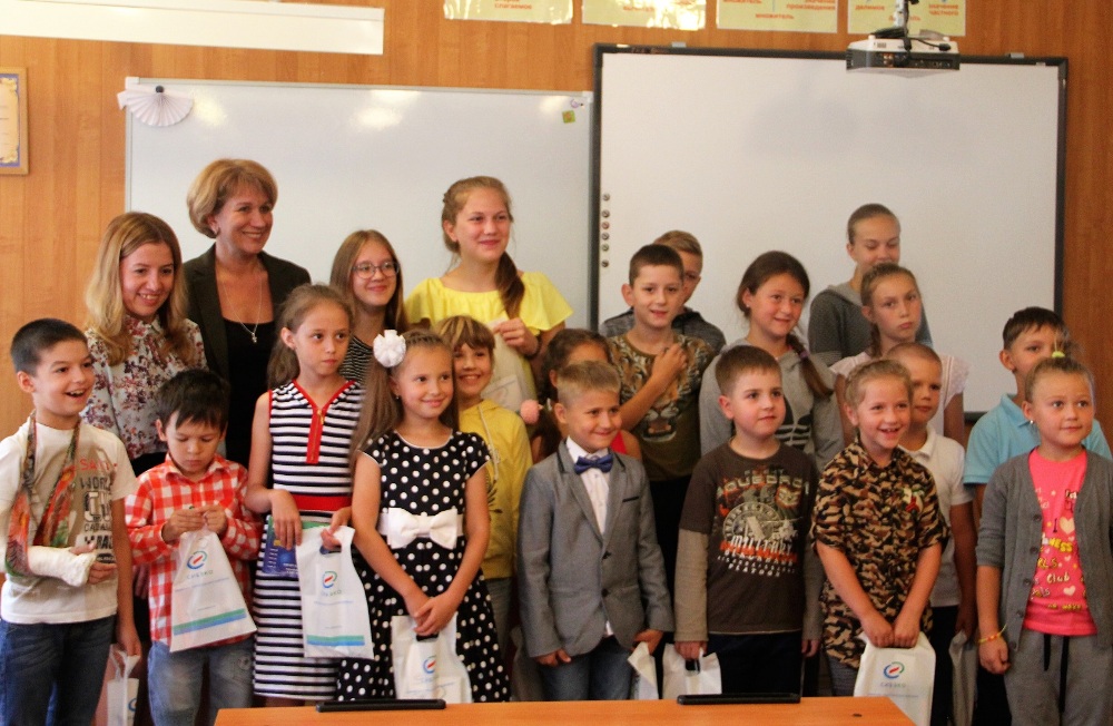 В конце урока всех ребят ждали замечательные подарки: канцелярские наборы и диски с мультиками.