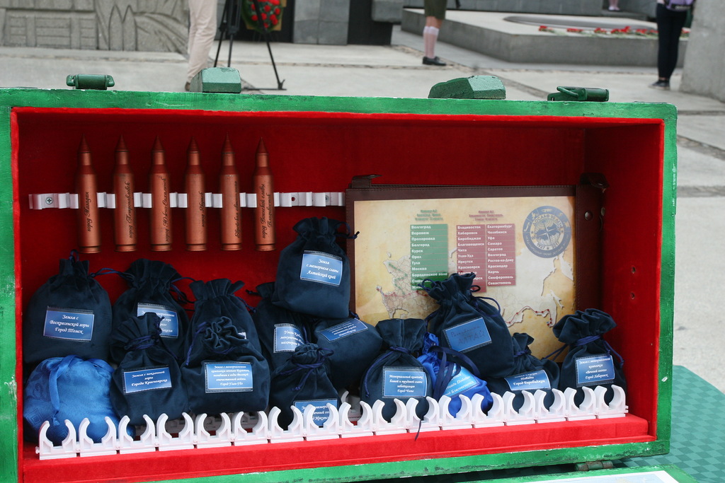 В память о международном пробеге в честь 90-летия служения Отечеству ДОСААФ России подготовлена земля от регионов России, которая будет доставлена участниками пробега в город-герой Севастополь, где впоследствии будет проведена торжественная церемония закладки земли, привезенной со всех регионов России в саркофаг у памятника Святого Владимира в районе Херсонеса.