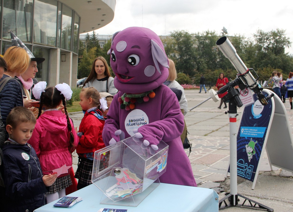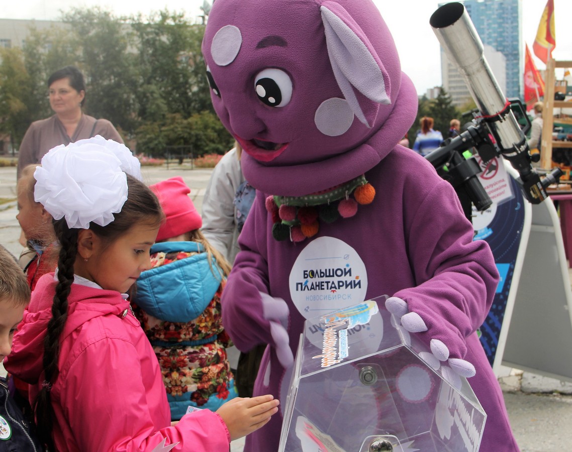 Встречал у театра всех гостей и Лунтик, который рассказал про Большой новосибирский планетарий, предложил испытать удачу и поучаствовать в лотереи.