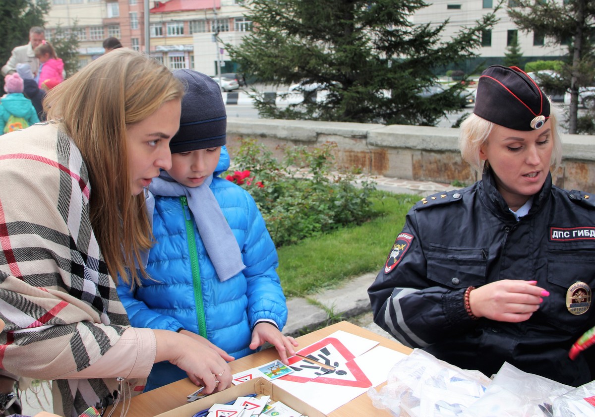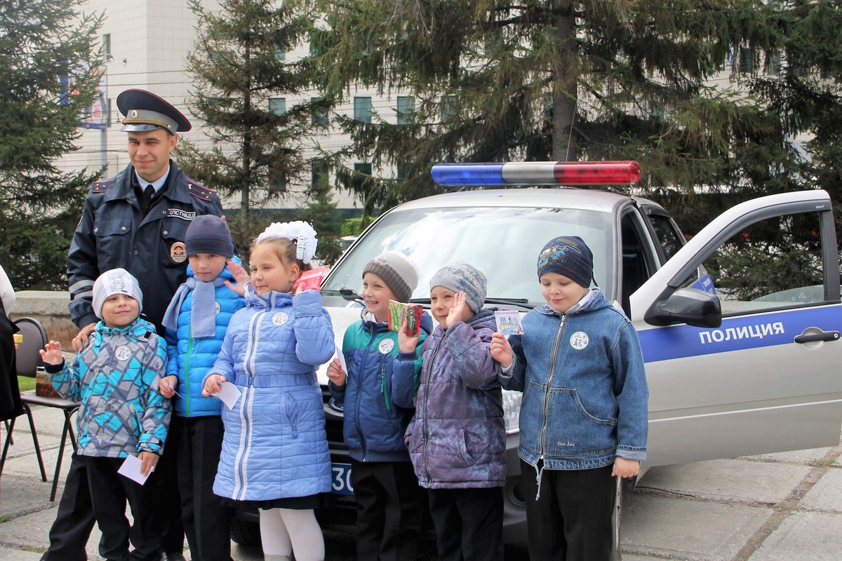 Возле входа в театр «Глобус» ребят и их родителей ждала интерактивная площадка под названием «Правила дорожные каждый знать обязан». Всех ребят встречала Зебра из Новосибирского «Детского автогородка» и предлагала гостям проверить свои знания Правил дорожного движения. Первоклассники с удовольствием отвечали на вопросы и успешно справились с заданиями, а также участвовали в конкурсе «Змейка» на веломобилях и самокатах. Живой интерес вызывали, конечно, патрульные автомобили ГИБДД, дети их рассматривали, могли посидеть, сфотографироваться.