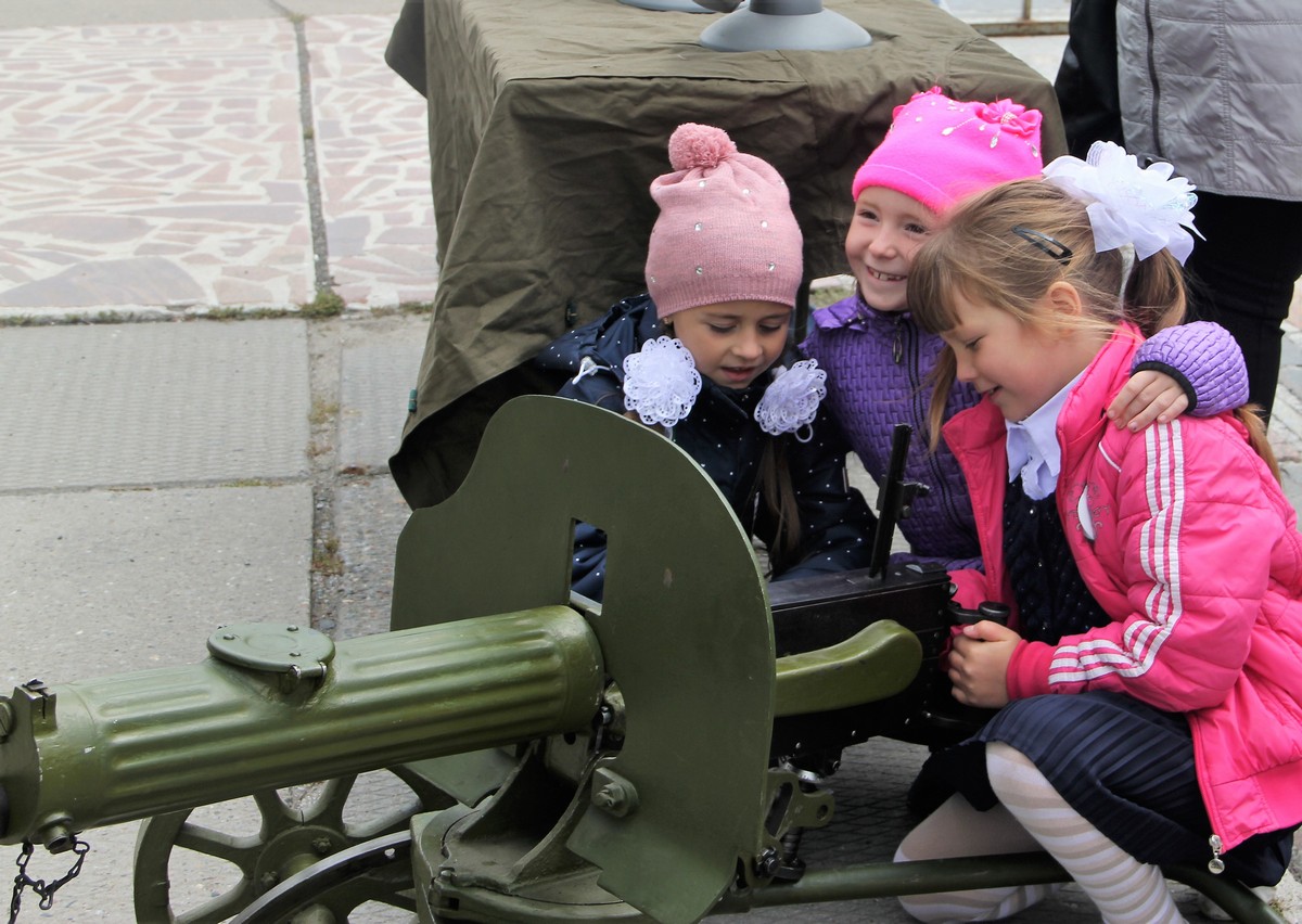 Не менее оживлённый интерес вызвали военная ретротехника и оружие. Детки могли посидеть в бронемашине, почувствовать себя пулемётчиками.