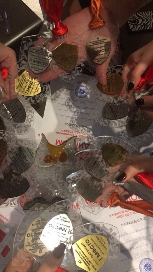 Ребята собрали самый большой урожай медалей этого турнира и привезли домой главную награду – «Хрустальную сову», завоевав 1 место в игре «Что? Где? Когда?», 2 место – «Многоборье» и 3 место – «Брейн-Ринг».