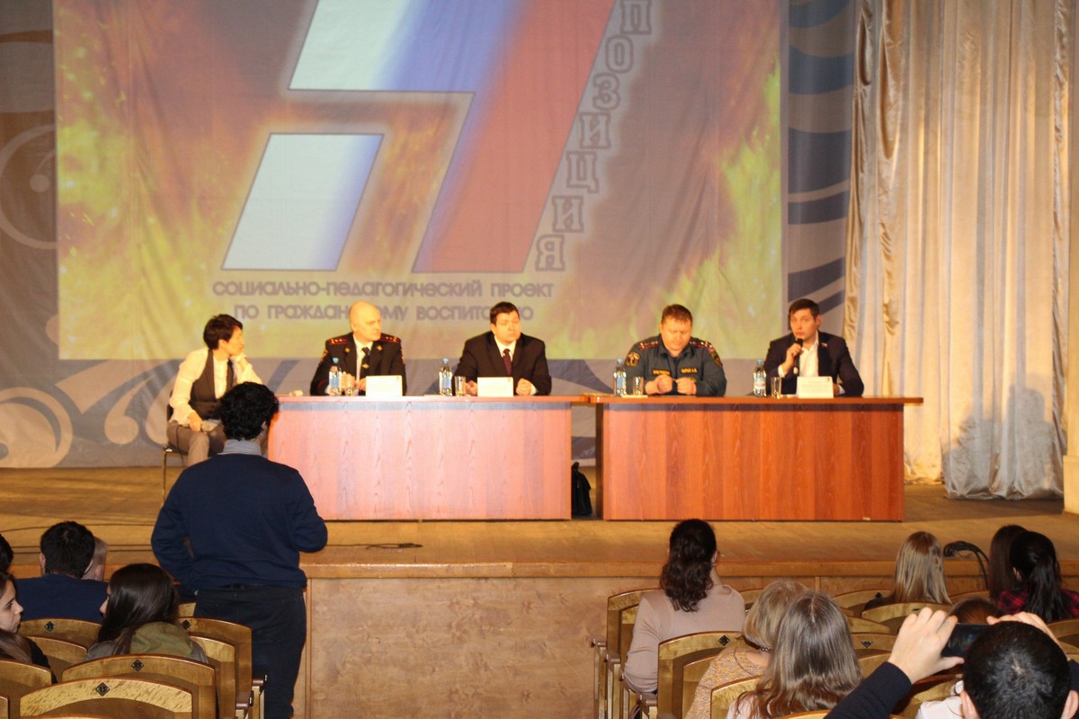 Более ста участников проекта «Позиция» задавали вопросы людям, чей каждодневный труд связан с понятиями помощь, поддержка, долг и честь. В воздухе царила атмосфера уважения, внимания и неподдельного интереса, как молодых людей, сидящих в зале, так и умудренных опытом профессионалов, находящихся за президиумом.