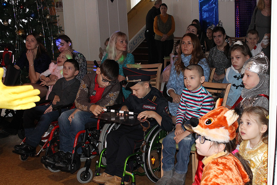 Одних из первых Дедушка Мороз пришёл поздравить детей с ограниченными возможностями здоровья из благотворительного фонда «Ковчег». Для них на утреннике для ребят выступили обучающиеся Вокально-хоровой студии «Радость» (педагог О.О. Безъязыкова), студии эстрадного вокала «Дебют» (педагог Л.В. Казимирова), обучающиеся театральной студии «Сказка» (педагог М.Д. Лобзина) показали отрывки из спектаклей «Буратино» и «Алиса в стране чудес». Ребятам очень понравился праздник, в подарок они получили сладкие угощения и открытки, сделанные в стиле «Хэнд мэйд» учащимися фонда.