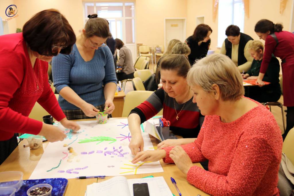 Участники семинара смогли поучаствовать в интерактивных играх, выполнили творческое задание, создав пейзаж из декоративных материалов и презентовали в шутливой форме свои работы.