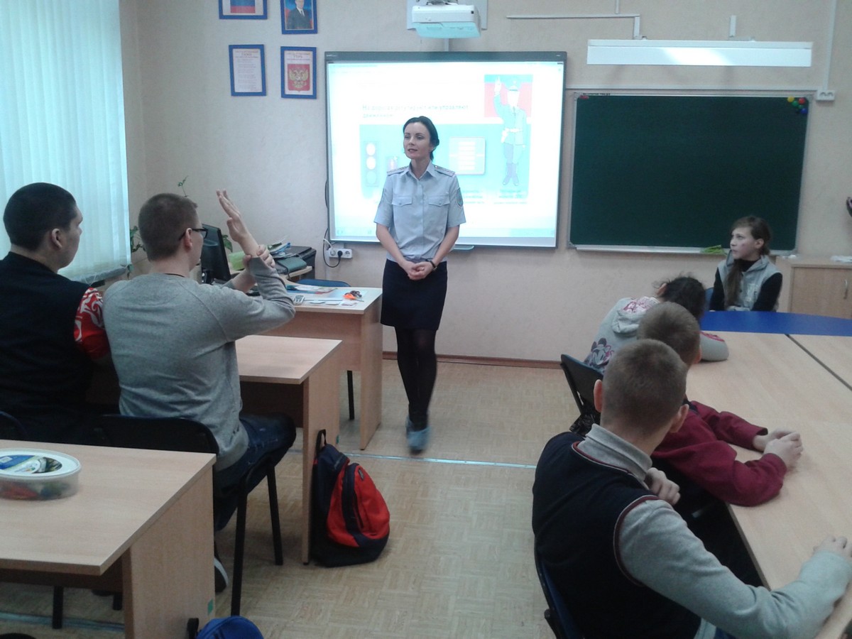 6 февраля в МКОУ С(К)Ш № 1 состоялась очередная встреча инспектора группы пропаганды БДД ОГИБДД УМВД России капитана полиции А.В. Варновской с учащимися 4–9 классов по вопросу профилактики безопасности дорожного движения.