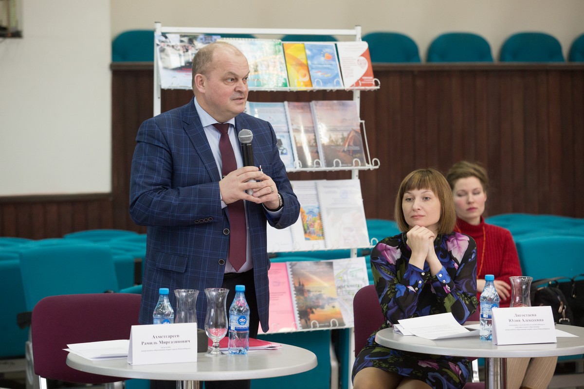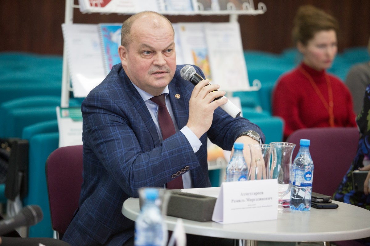 В работе круглого стола принял участие Рамиль Михайлович Ахметгареев, начальник департамента образования мэрии города Новосибирска.
