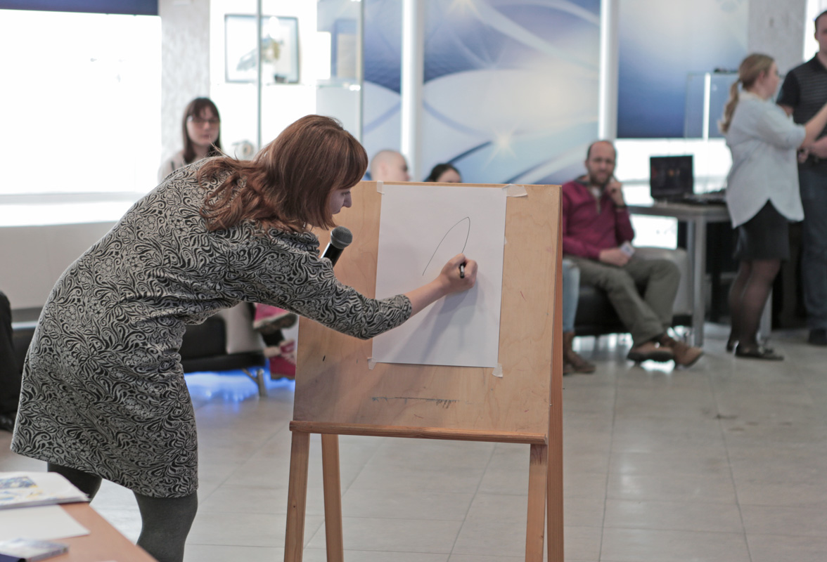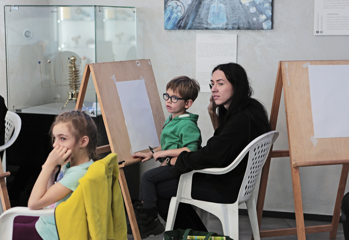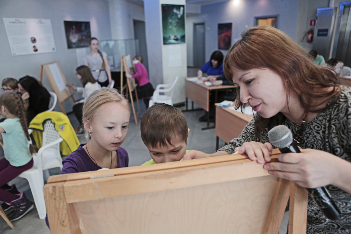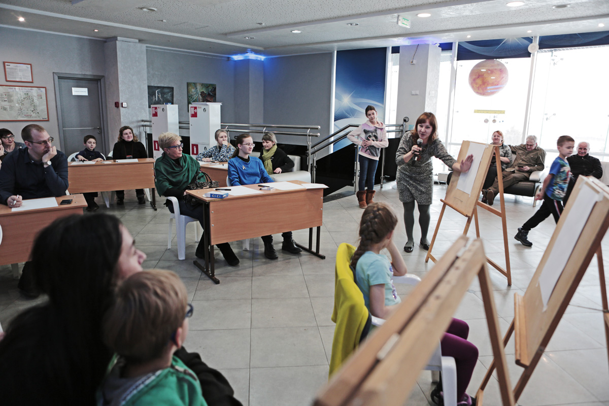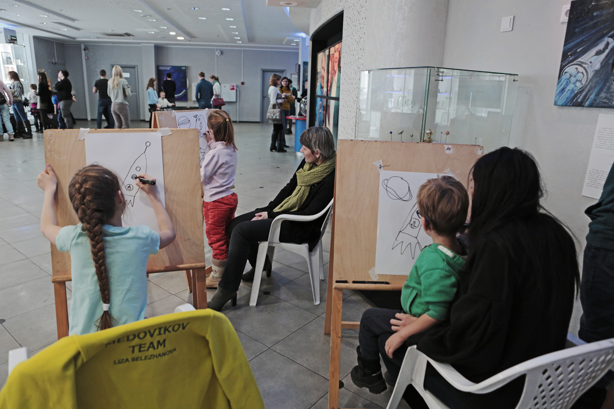Открытие выставки «Путь в невесомость» художницы Анастасии Просочкиной из Санкт-Петербурга началось с художественного мастер-класса для тех, кто всю жизнь мечтал рисовать. Он прошел под чутким руководством преподавателя высшей категории художественной школы «Весна». Участники мастер-класса создали картины на космическую тематику.