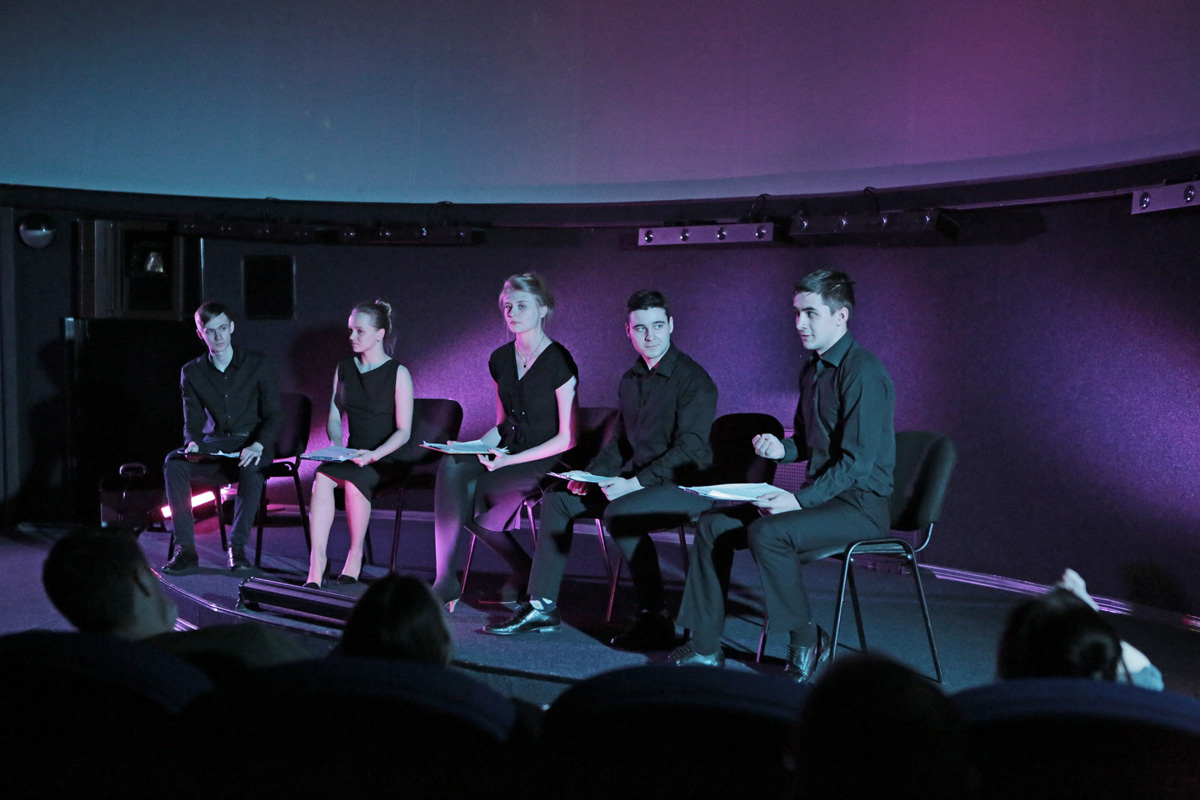 А в звездном зале гостей ждала другая грань искусства. Театрализованный пролог в исполнении студентов театрального училища. Под невероятные картины на куполе Звездного зала зрители слушали историю Маленького принца.