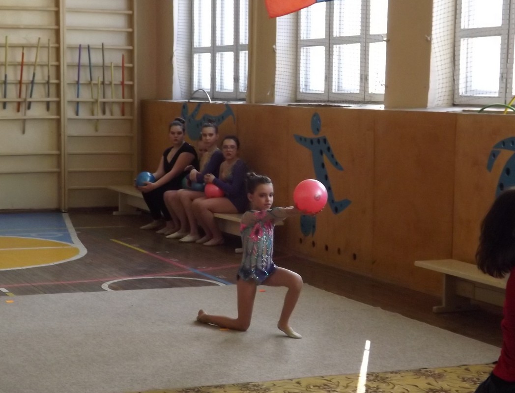 Спартакиада состояла из двух программ: упражнения с мячом и упражнения без предмета. Все девочки приняли участие в двух программах. Закончились показательные выступления совместным номером «Летящий мяч». На протяжении всего выступления детей поддерживала тренер-преподаватель по художественной гимнастике К.Ю. Рожкова.