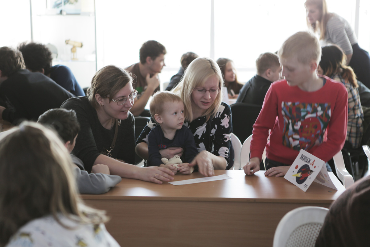 Мамы и папы, бабушки и дедушки создали 13 космических экипажей. Им были предложены веселые интеллектуальные вопросы и разнообразные астрономические задания.