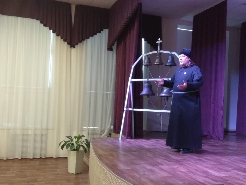Директор музея колокольного звона Талашкин Алексей Владимирович рассказал об истории колоколов и звонниц на Руси, о работе звонарей, о видах звона и продемонстрировал варианты колокольного звона. В презентации использовались фрагменты мультипликационных и документальных фильмов об искусстве колокольного звона. Учащихся начальных классов удивила музыкальность тяжеловесных колоколов и вдохновила история христианского наследия России!