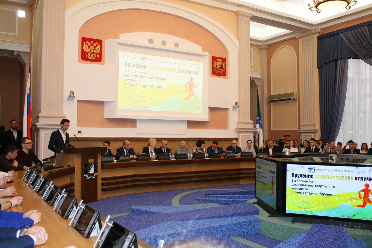 10 апреля в большом зале мэрии Новосибирска торжественно вручили золотые знаки отличия Всероссийского физкультурно-спортивного комплекса «Готов к труду и обороне» (ГТО), среди победителей были обучающиеся и педагоги образовательных организаций города Новосибирска. Всего было вручено более 300 знаков отличия.