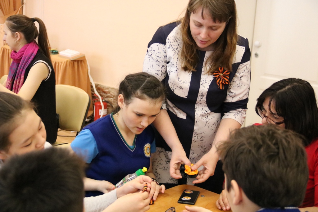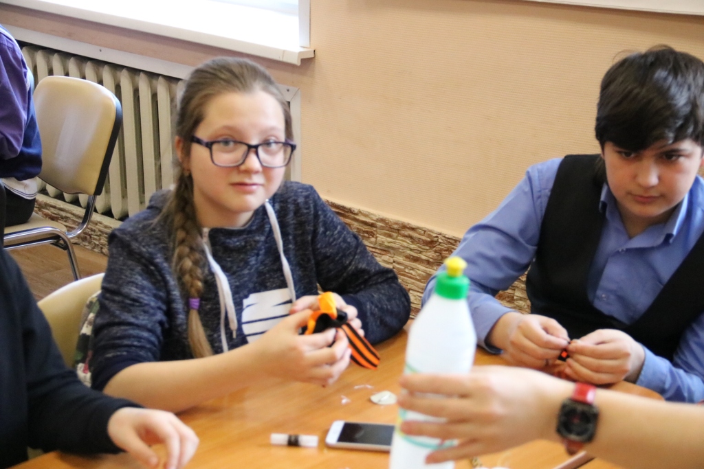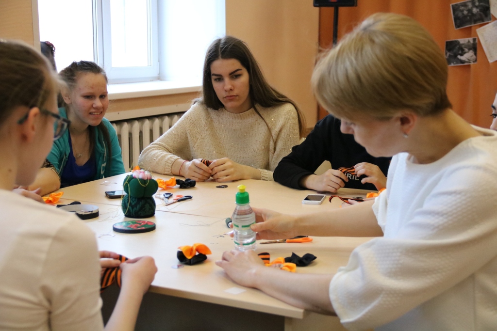 В канун Дня Победы 18 апреля в Центре внешкольной работы «Галактика» в рамках проекта «Мы – наследники Победы!» прошел мастер-класс «Брошь из георгиевской ленты» для учащихся и педагогов образовательных учреждений Дзержинского района.