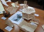 Были представлены ажурные работы, выполненные с помощью лобзика, резьбы по дереву.