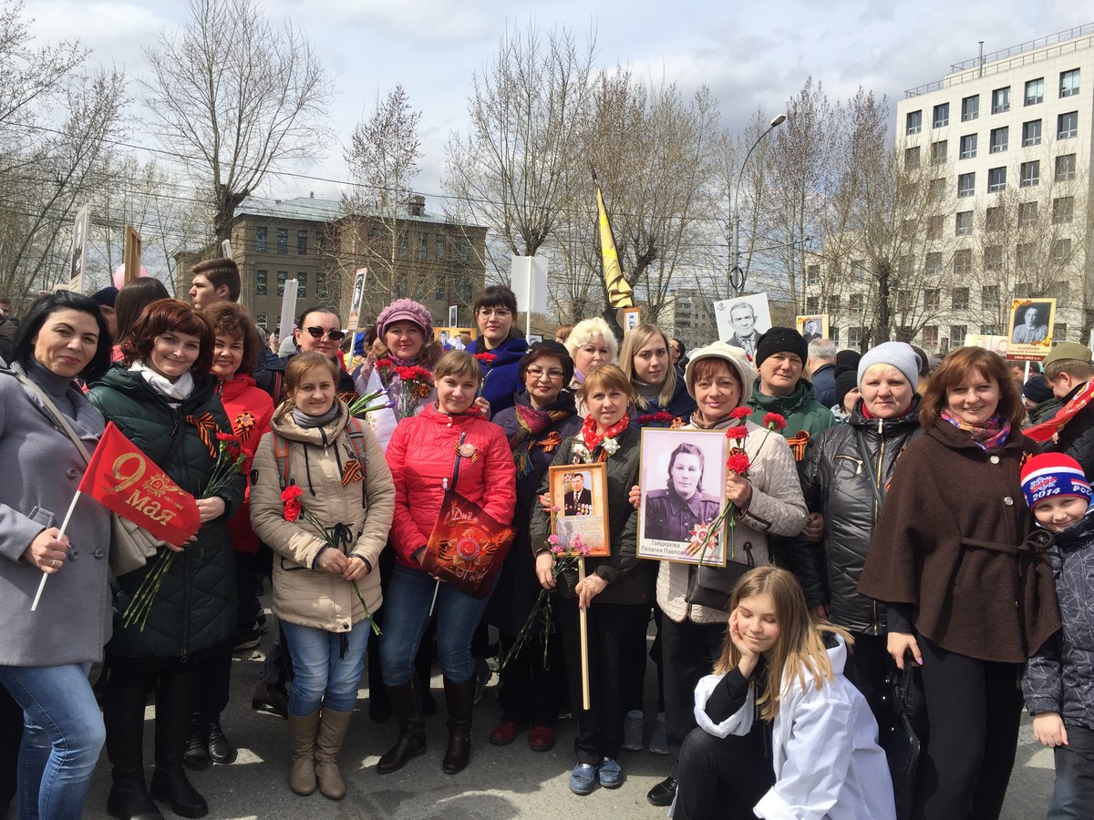 В колонне «Полка Памяти» шли разные люди: ученики и педагоги всех школ Ленинского района, воспитатели детских садов и их детки, жители Левобережья разных поколений, администрация Ленинского района города Новосибирска, губернатор Новосибирской области Андрей Александрович Травников. Почти все несли в руках цветы для возложения у Вечного огня. Флаги Российской Федерации и Знамя Победы развивались над колонной. Но главным достоянием нашего шествия были штандарты наших предков, благодаря которым мы сейчас живем в мирной стране. И дети, и взрослые с гордостью несли своих героев! Каждый участник шел с глубокой грустью на лице...