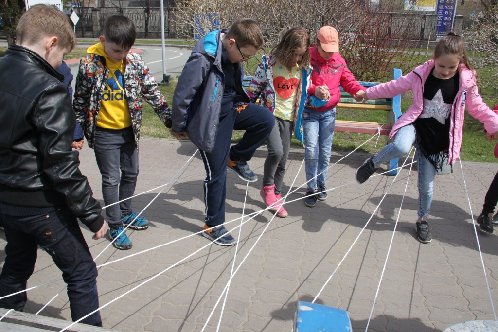 Школьники с большим энтузиазмом принялись за дело: разгадывали логические загадки, исполняли хором песни о дружбе, переносили предметы с помощью палочек, и даже пробирались через «веревочную паутину». Команды блестяще справились с заданиями и восстановили разрушенный мост!