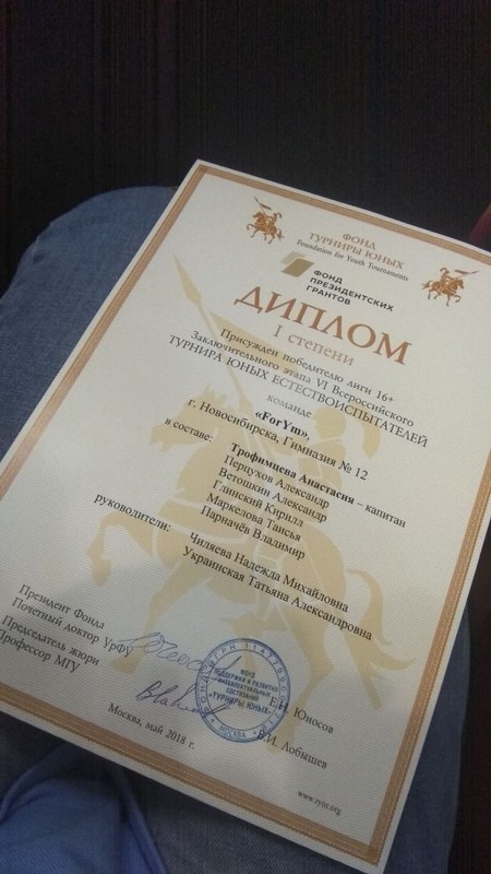 Команда гимназии завоевала почетное право представлять Россию и Новосибирскую область на Международном турнире в Грузии. Для подготовки к турниру команда приглашена в МФТИ в город Долгопрудный.
