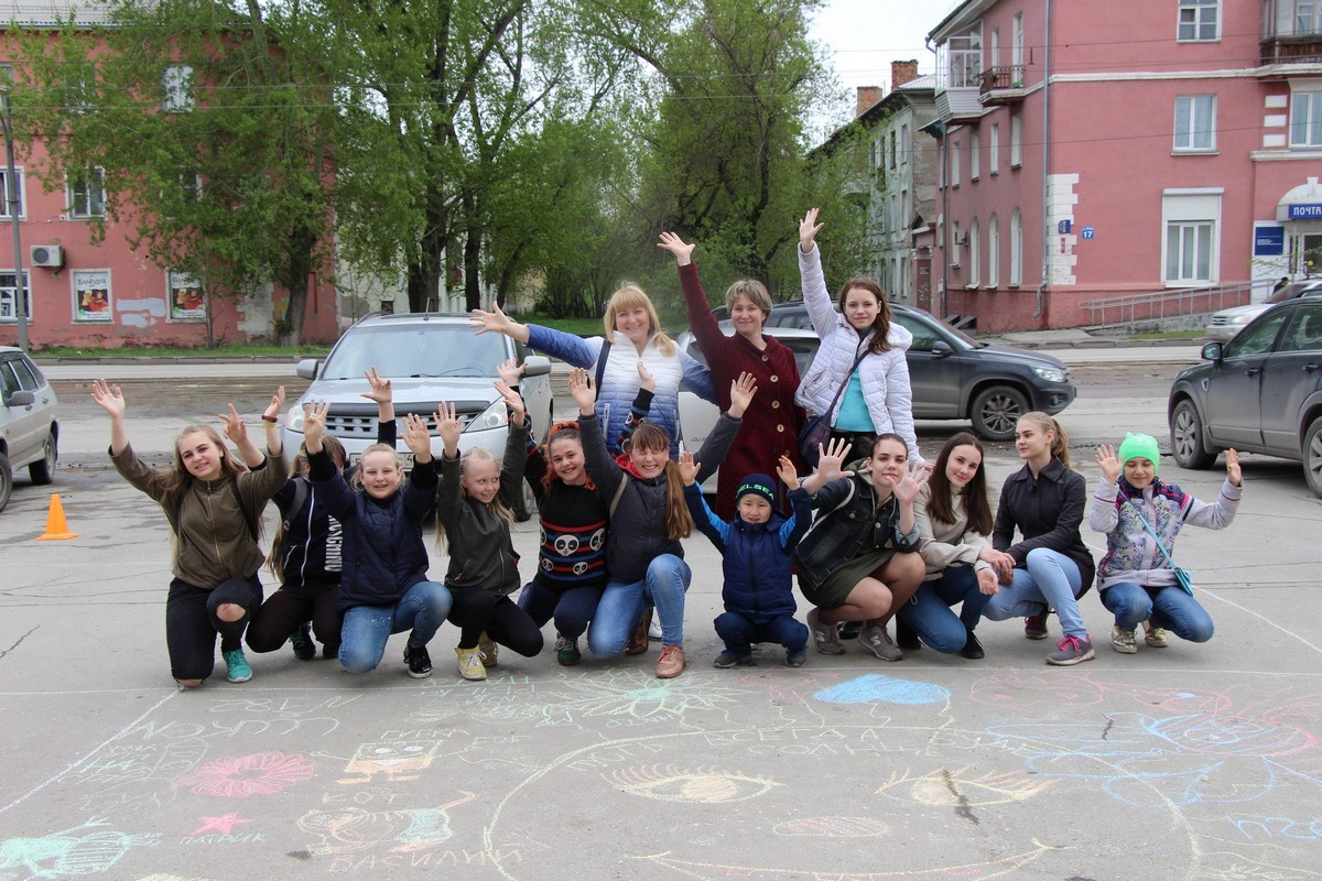 В начале праздника ребят встречали клоуны-аниматоры, которые провели традиционный конкурс рисунков на асфальте на тему «Наш герой». Так на площадке перед ДДТ появились изображения персонажей анимэ, герои отечественных мультфильмов, ветераны Великой Отечественной войны и даже портрет Ростислава Шило.