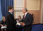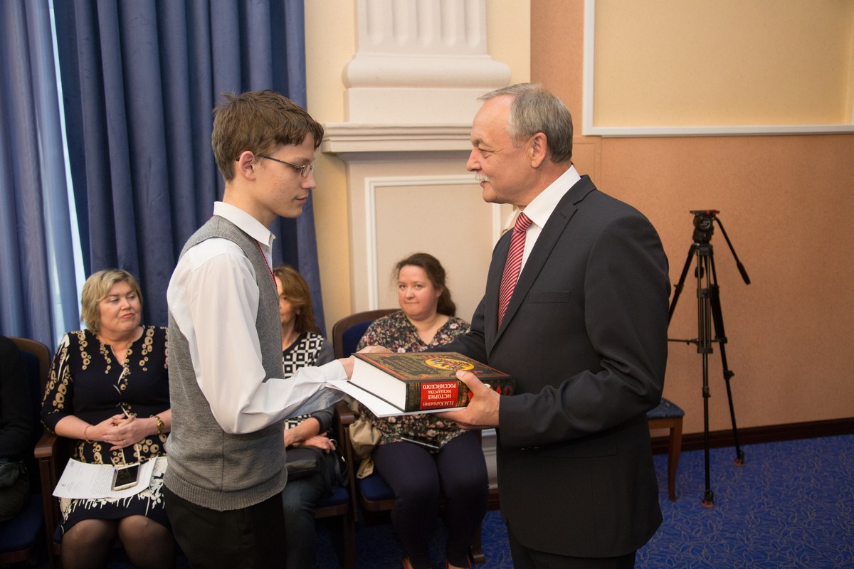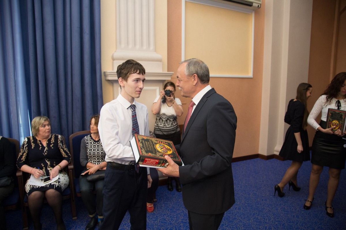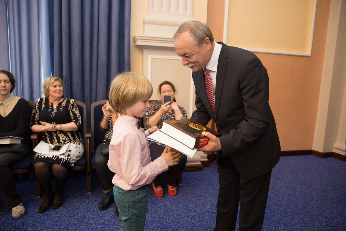 Заместитель мэра города Новосибирска Валерий Александрович Шварцкопп поздравил ребят и вручил им заслуженные награды: «Сегодня мы чествуем учащихся школ и воспитанников детских садов, тех, кто одержал победу на уровне страны и мира. Это очень почетно, но и очень ответственно, ведь вы представляли не просто ваши образовательные организации, вы представляли Новосибирск в целом. Дорогие ребята, мы гордимся вами. Мы благодарны вам, вашим педагогам, вашим родителям за те силы и энергию, которые были потрачены на участие в состязаниях. В этом году наш город отмечает 125-летний юбилей, нам бы хотелось, чтобы ваше будущее было связано с Новосибирском, чтобы вы нашли здесь достойное применение своим талантам и способностям, и тогда город будет развиваться столь же стремительно, как сейчас. Конечно, ребята, какую бы дорогу вы для себя ни избрали, не прекращайте бороться, умейте находить нестандартные решения, тогда вы будете успешными!»