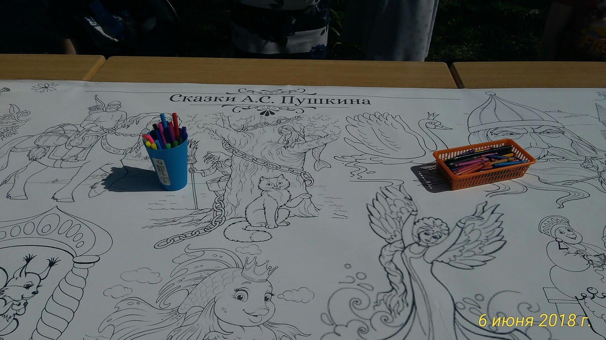 Проявить свои художественные способности можно было на станции «Художественная», создав иллюстрации к любимым пушкинским сказкам. Самые маленькие участники раскрашивали готовые шаблоны и огромную раскраску.