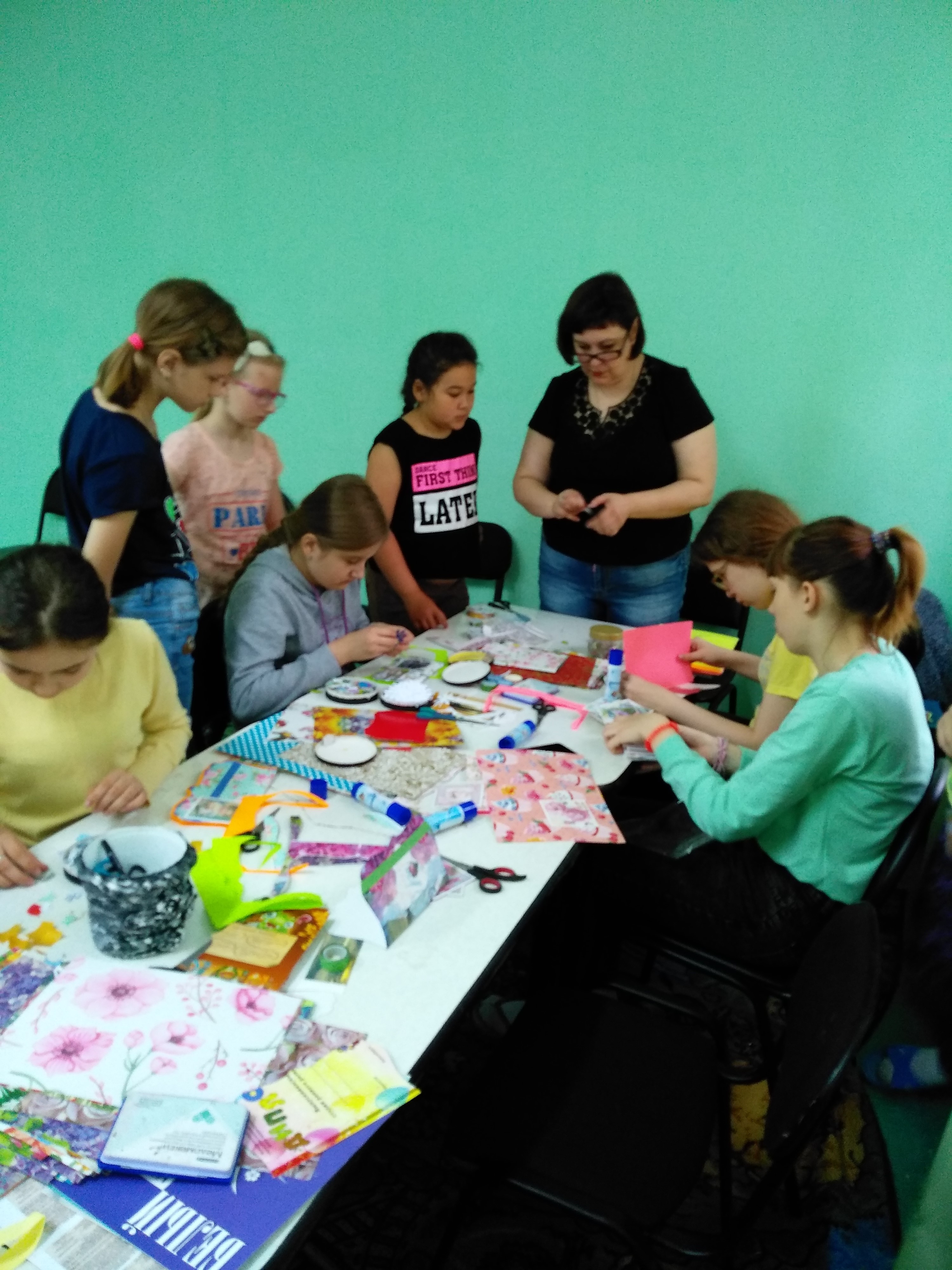 11 и 12 июня по просьбе организаторов смены педагоги Центра внешкольной работы «Галактика» структурного подразделения художественно-прикладного творчества Виль О.В., Вьюн М.М., Костюченко Н.Г. и Руднева Е.А. провели мастер-классы по изобразительному и декоративно-прикладному творчеству. Педагоги познакомили участников смены с такой техникой как «Айрис фолдинг», научили рисовать углем и гелиевой ручкой животных и пейзажи, помогли изготовить своими руками «сквиши» и ещё многое другое.